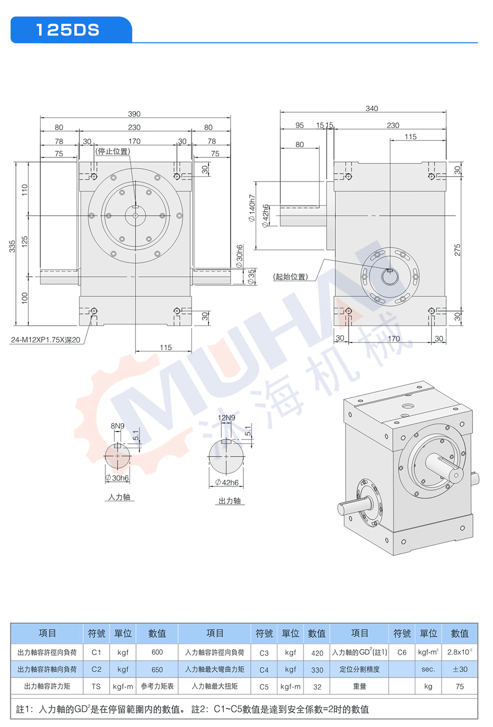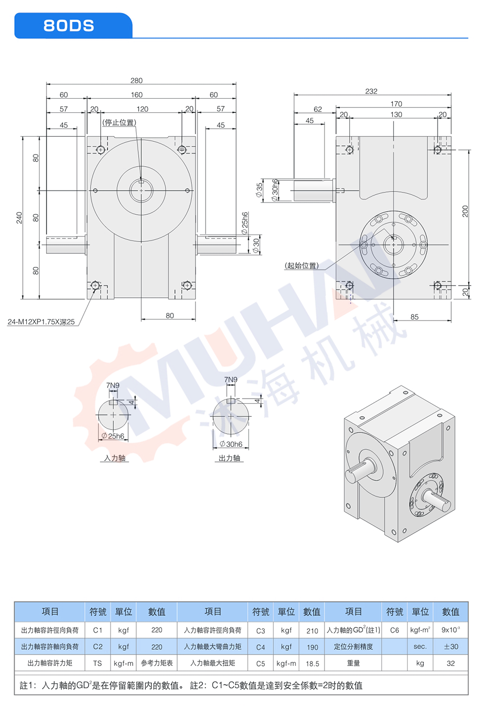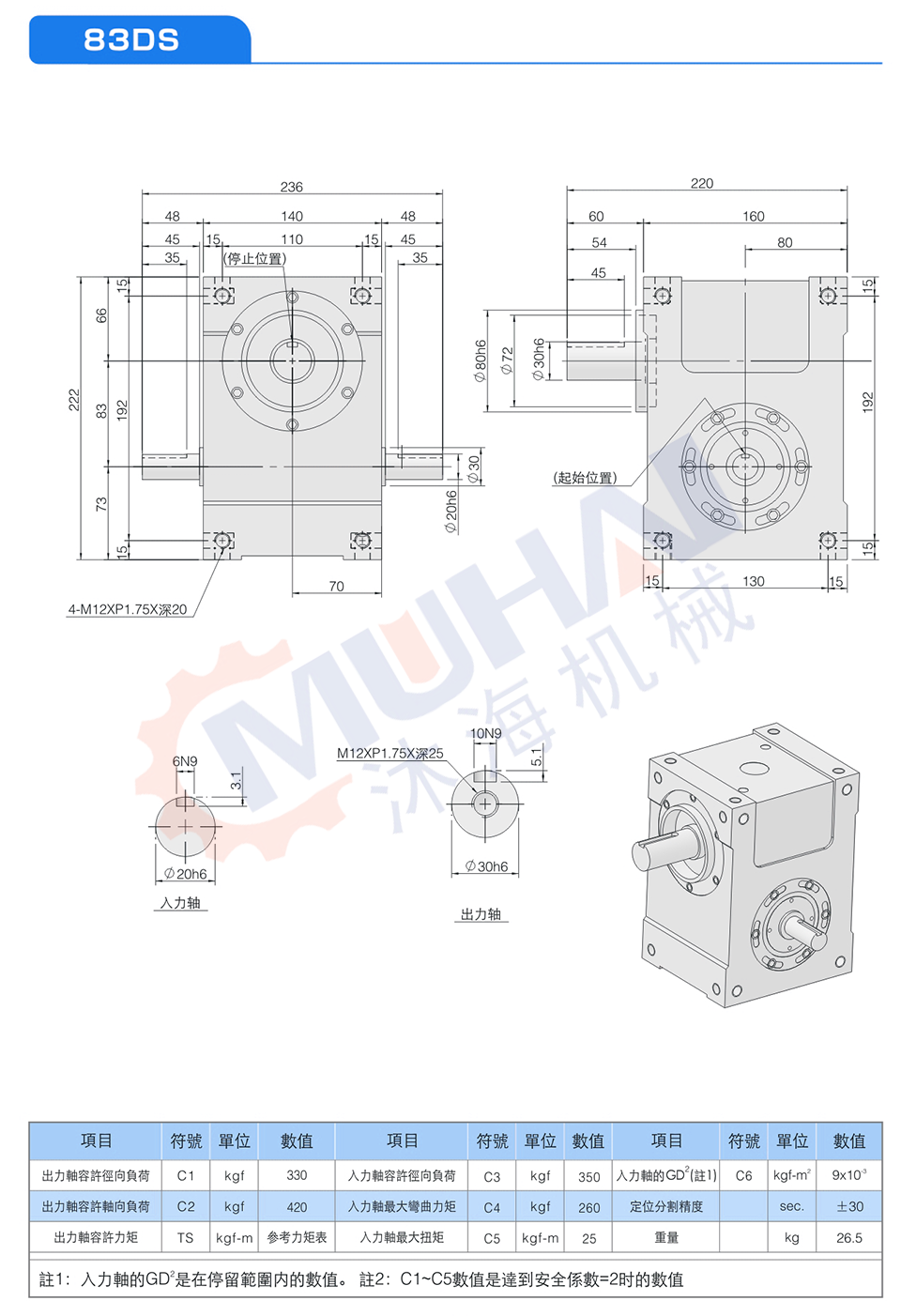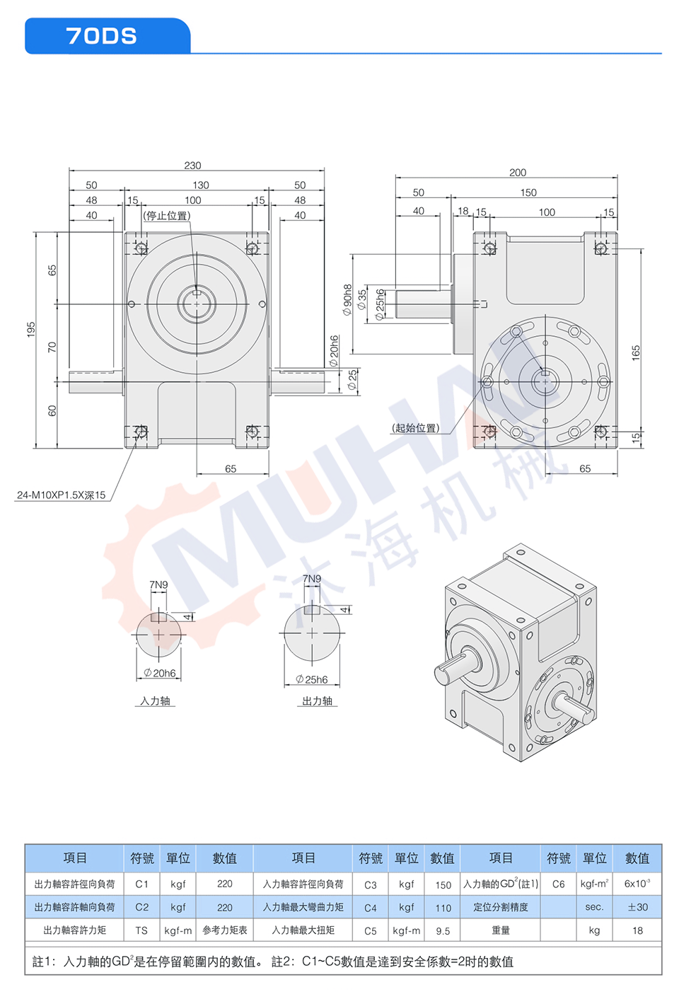 此系列機種為典型傳統式心軸造型,其安裝配件之加工安裝配合齒輪、聯軸器或聯軸盤,需特別注意孔徑公差(+0.015/-0)及鍵槽公差(+0.05/-0),其使用場合在輸送帶驅動、齒輪驅動、無間隙聯軸器結合驅動居多。
